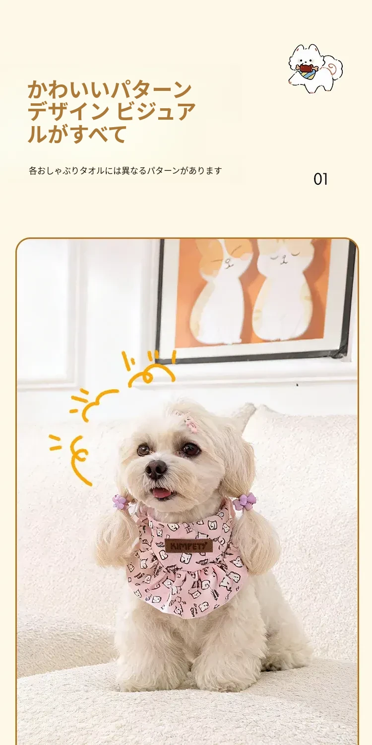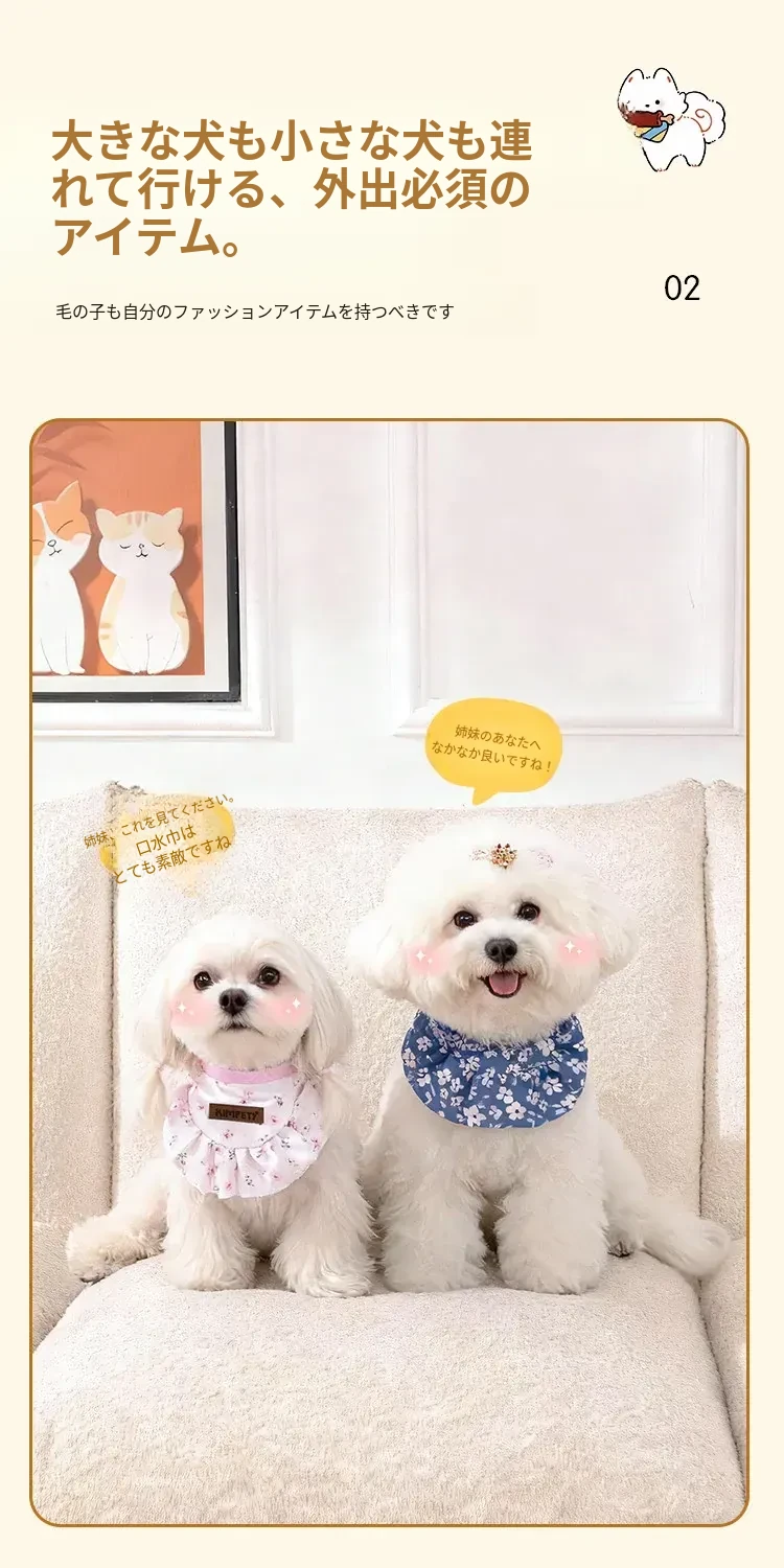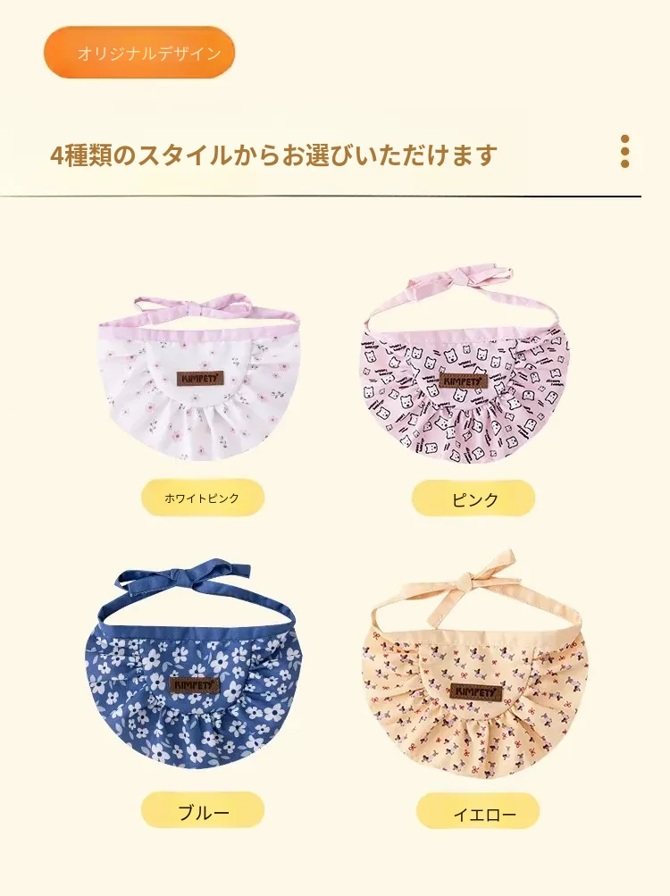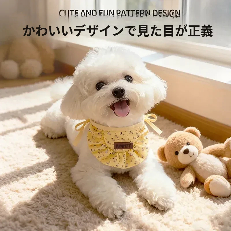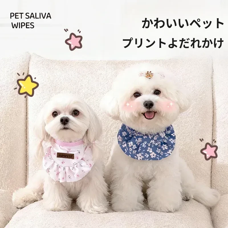 かわいいペット用オリジナルプリントのよだれかけ!犬や猫にぴったりのキュートなフラワーパターン。おしゃれで楽しいペットアクセサリーで、愛らしさ倍増!あなたのペットをもっと魅力的に演出します。