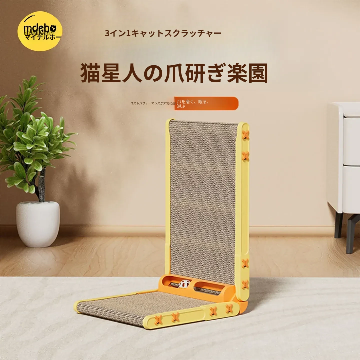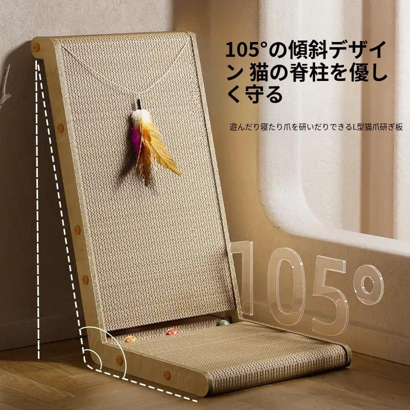 耐久性抜群!立てかけ式L型キャットスクラッチャー - 猫の爪研ぎと遊びに最適!壁にぴったりフィットし、毛が落ちない設計で、猫ちゃんも大満足のキャットハウス兼用おもちゃ!