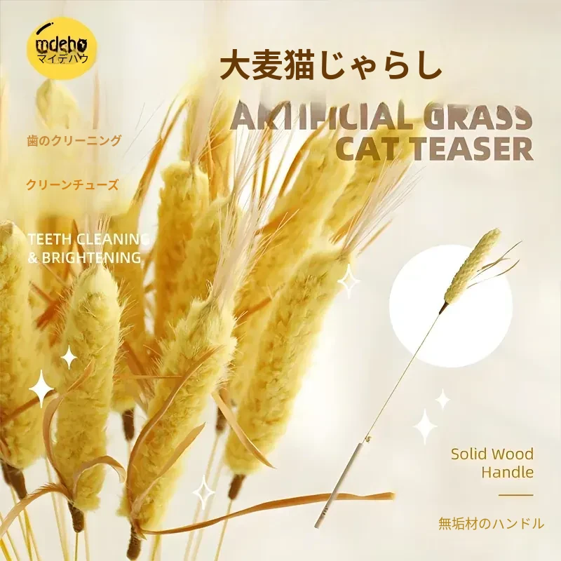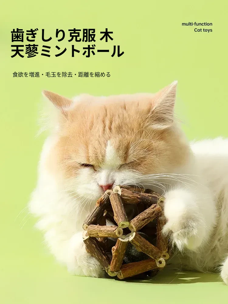 猫が夢中になる!木製ねこじゃらしと天蓼ミントボールのセット - かじり耐性抜群、歯磨きにも最適なキャットトイ。猫ちゃんの退屈解消に最適なアイテムです!