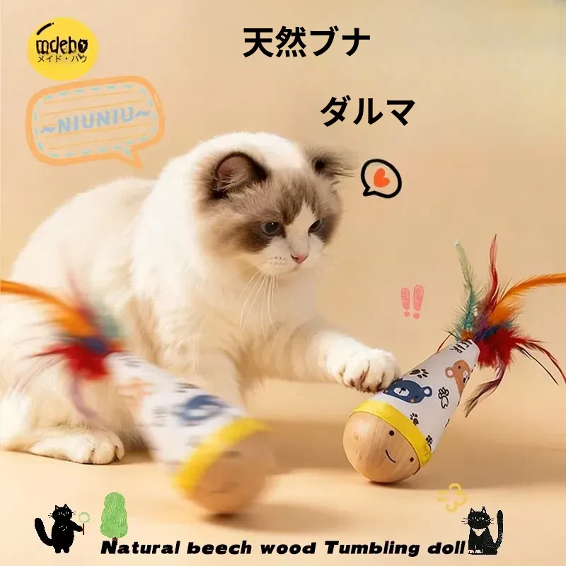 倒れないおもちゃ!猫ちゃんが夢中になる羽毛付きダンスボール 体力発散&ストレス解消に最適!小猫必見の必需品!