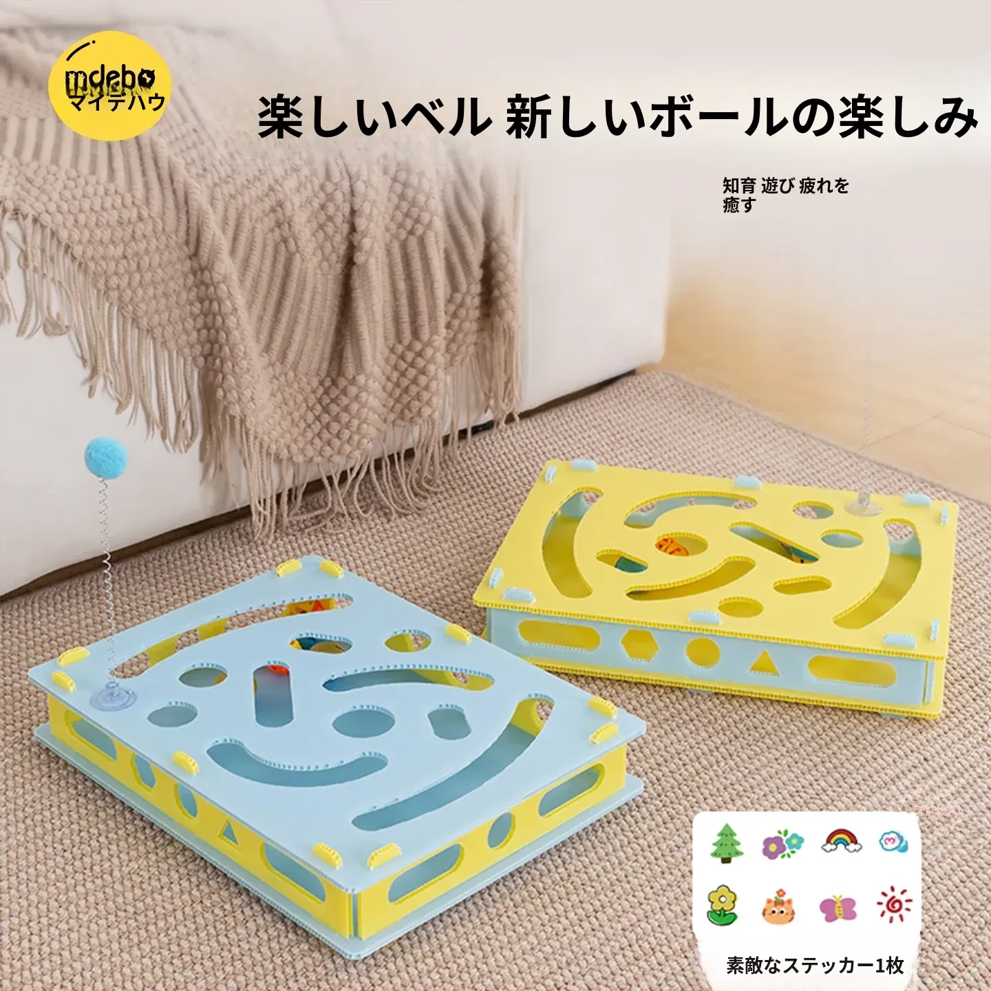猫ちゃんのストレス解消!知育おもちゃ・迷路付きダンボールボックス、楽しさ満載のキャットボール&ベル付きおもちゃで、遊びながら頭を使おう!