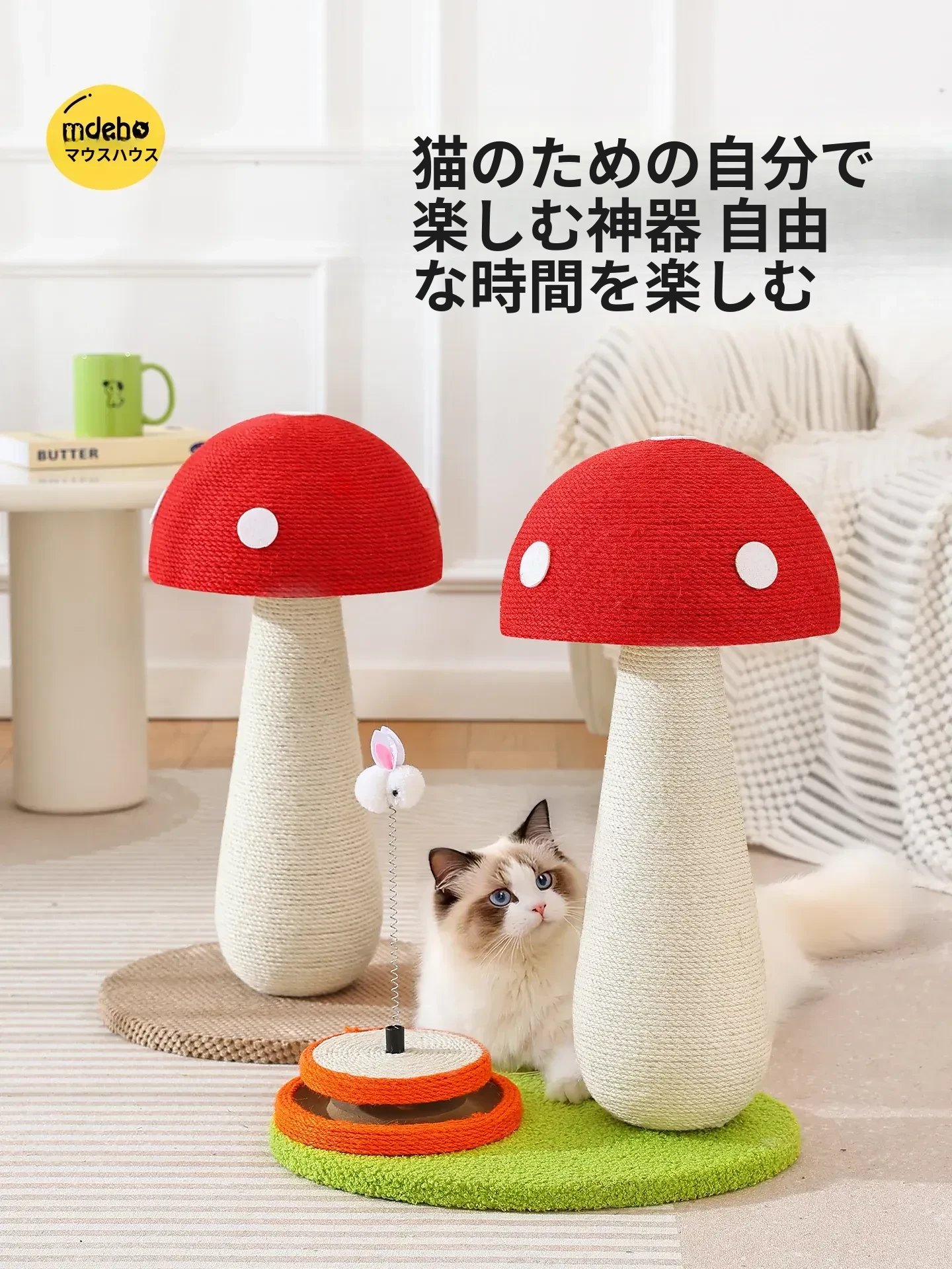 【特別体験】レッドマッシュルームキャットスクラッチャー - 可愛いデザインで、猫ちゃんも大満足!爪研ぎ&遊びに最適なアイテムです!