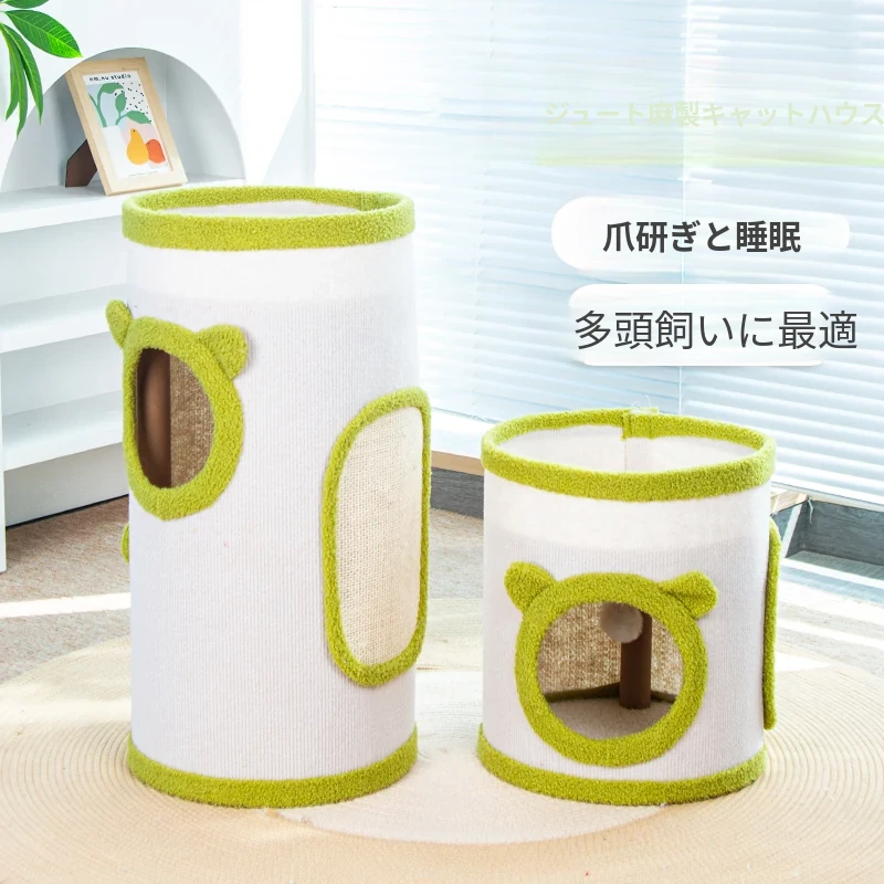 四季使える猫のヴィラ!キャットタワーと爪とぎが一体化した二層構造の快適な猫ハウス。愛猫のための理想的な遊び場と休息スペースを提供します!